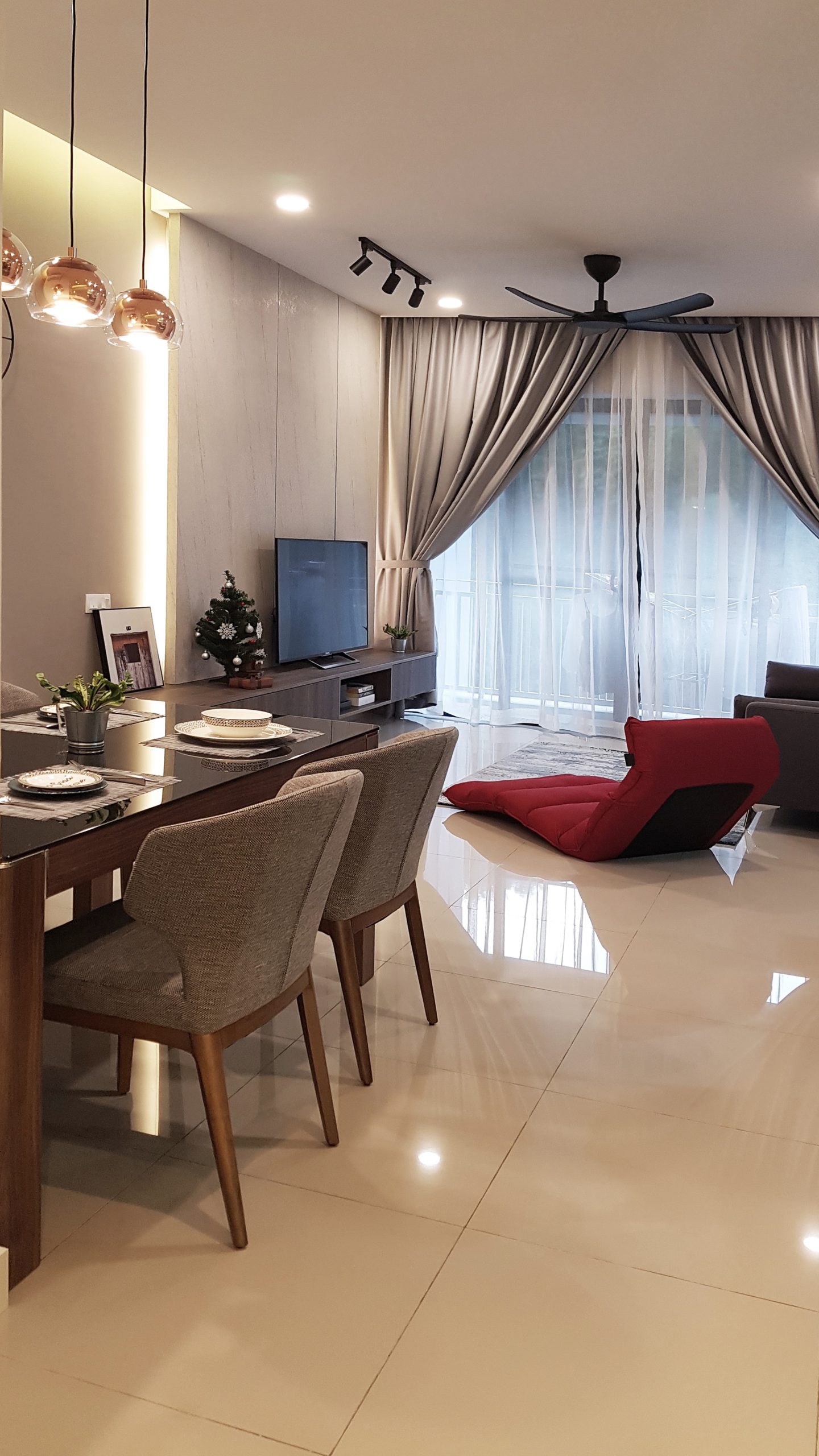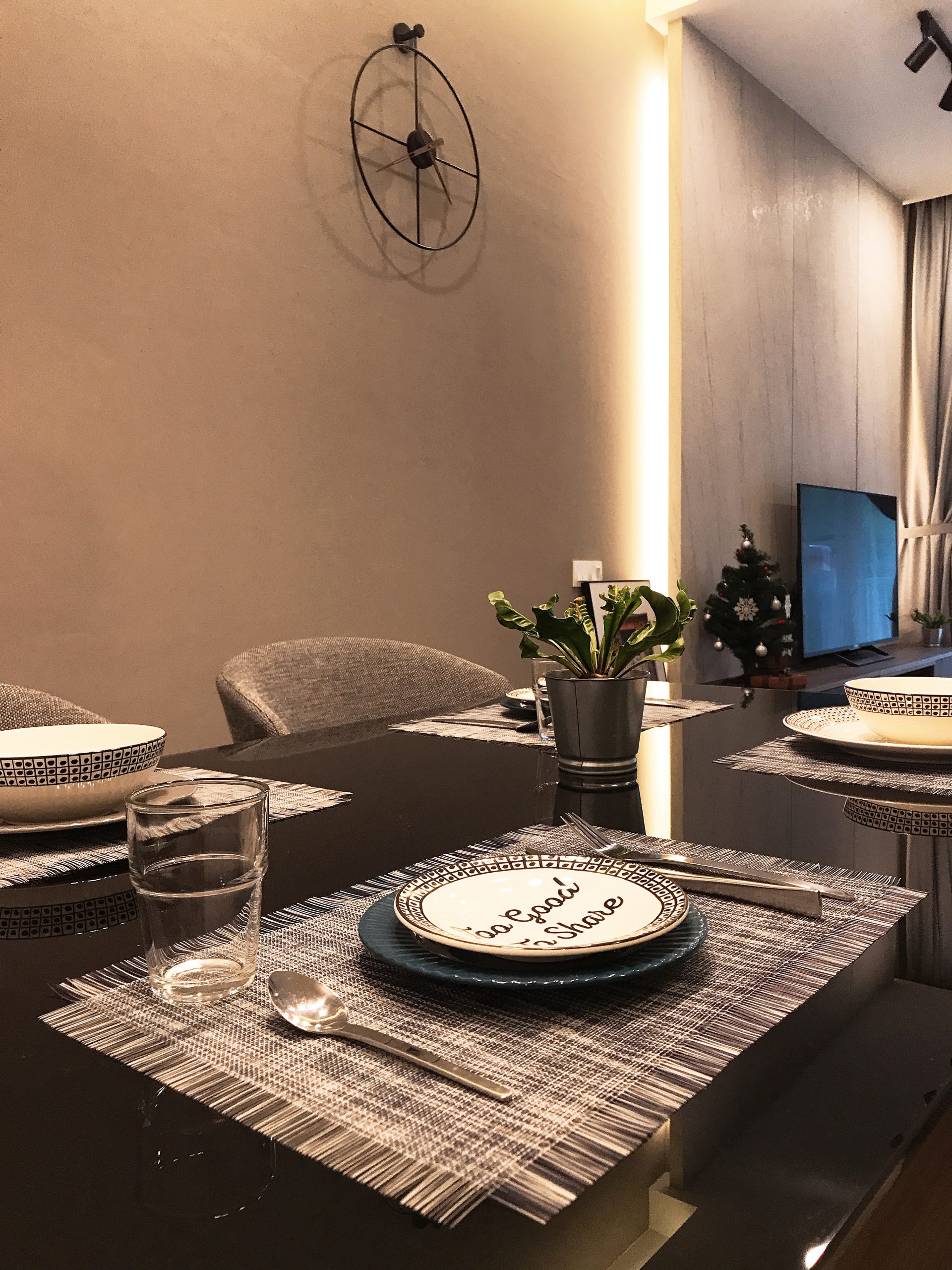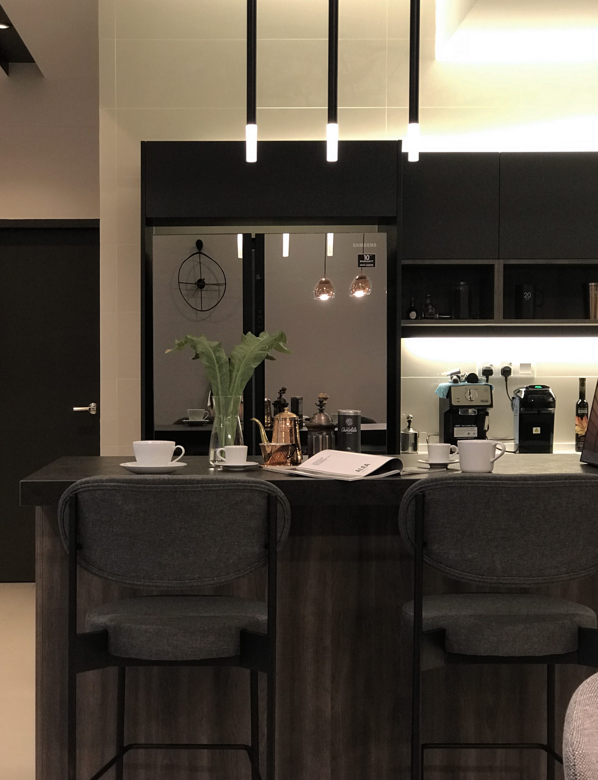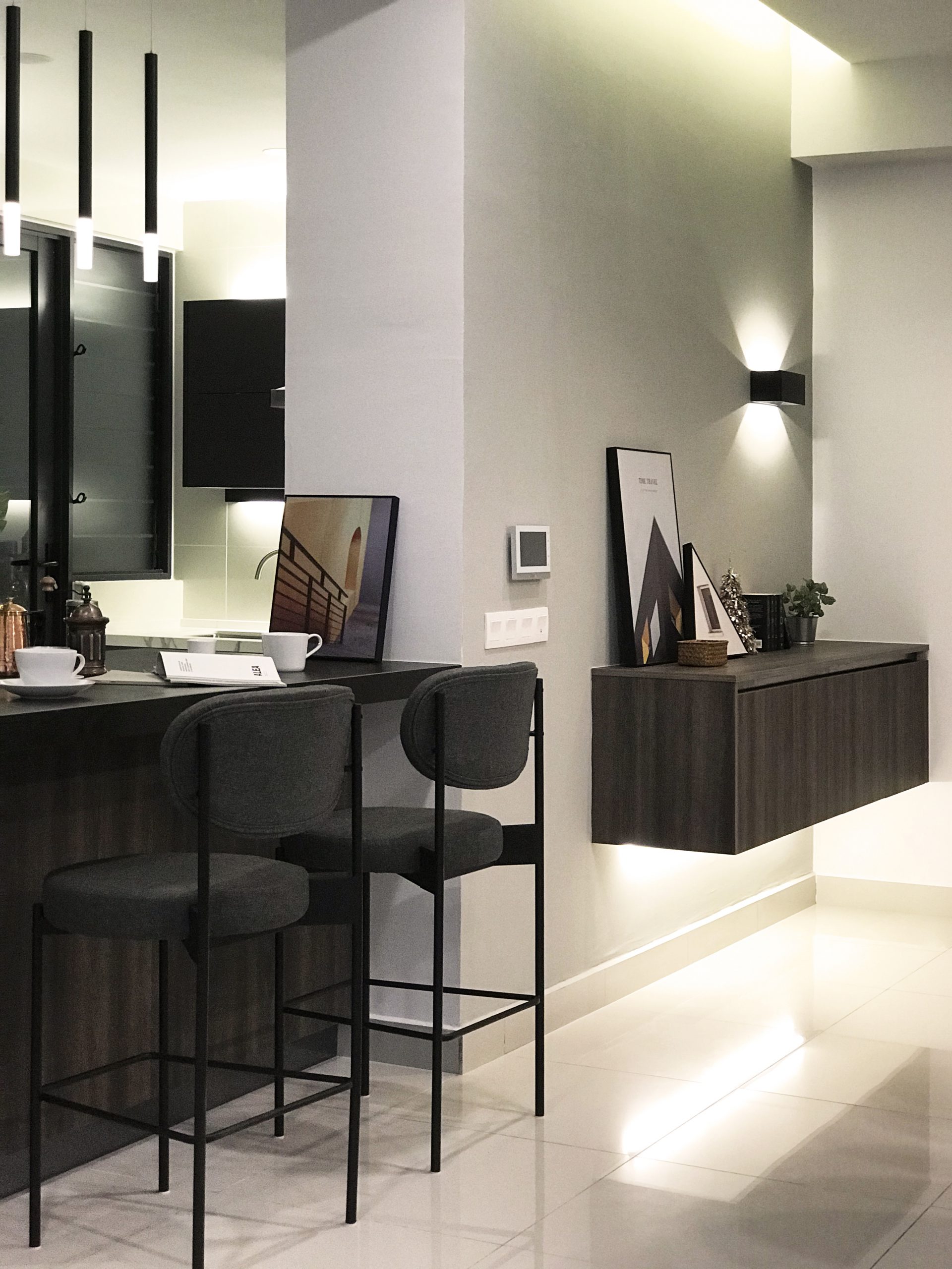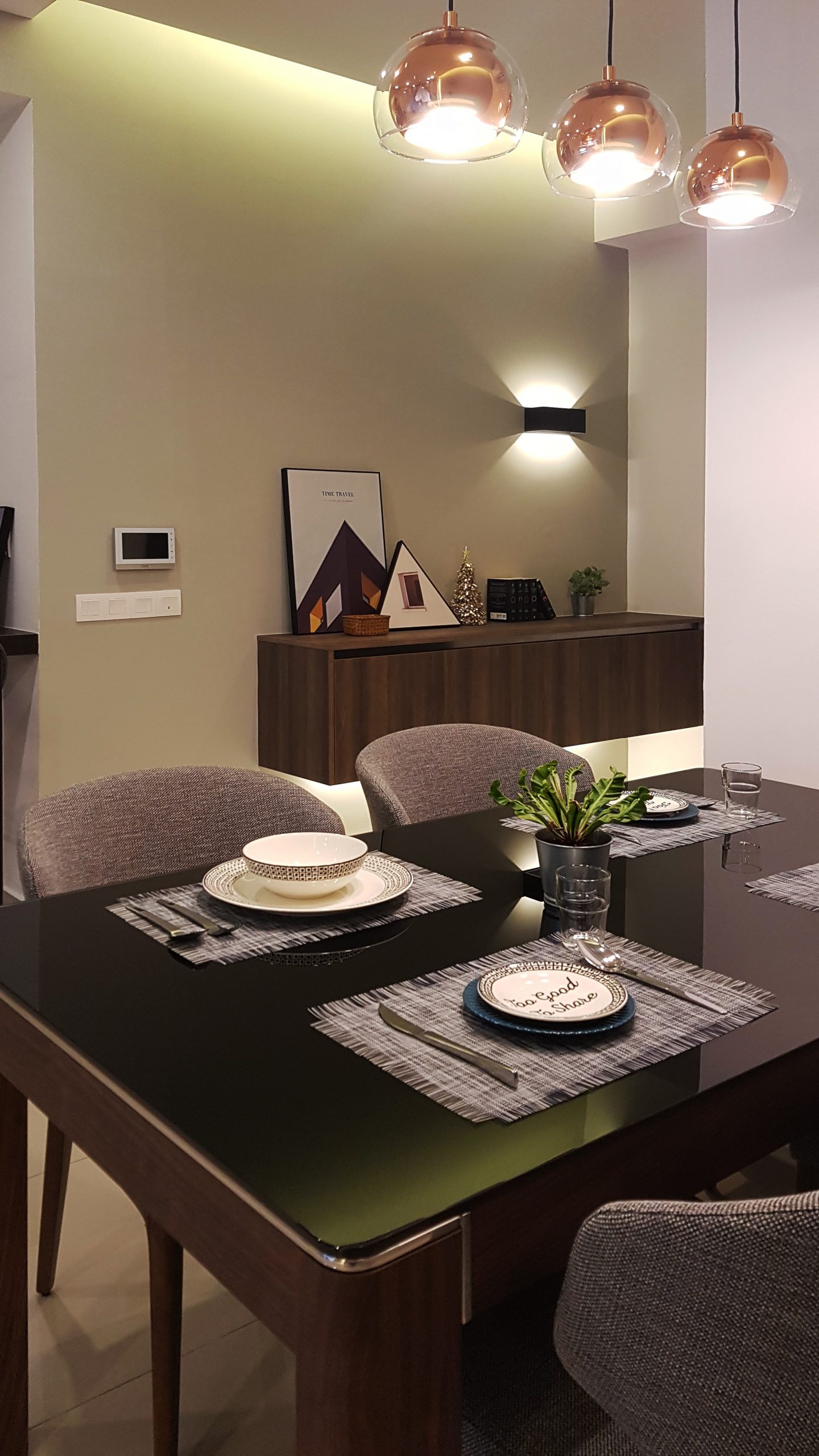 A combination of warm lightning, wooden furniture, brown and grey is truly aesthetic and home-coming. The magic thing about home is that it feels good to leave and it feels even better to come back.