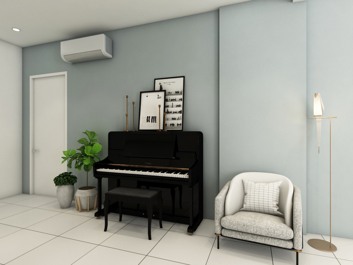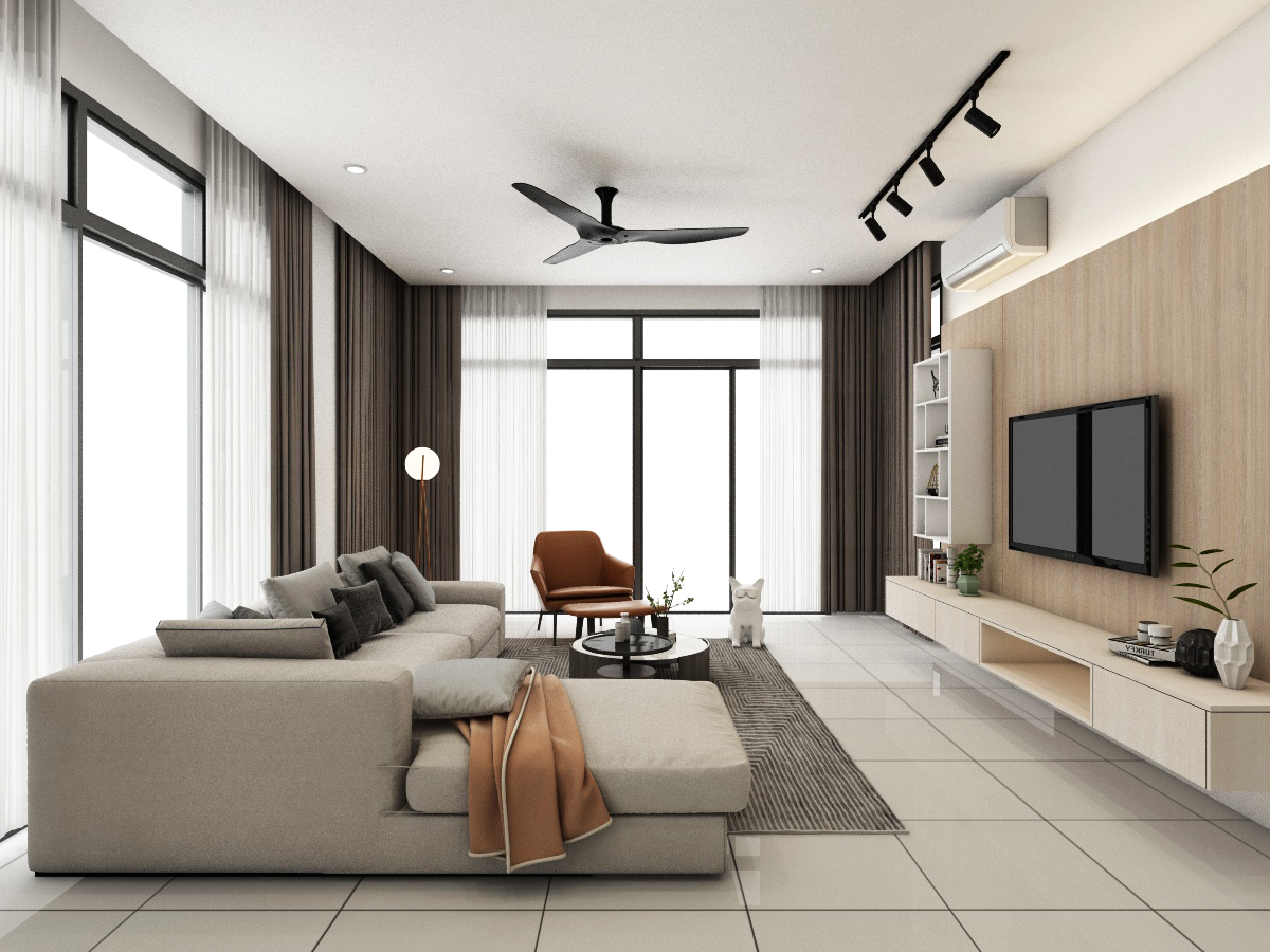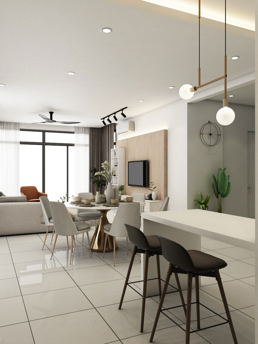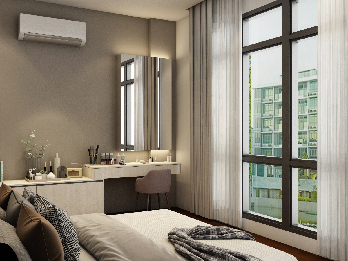 Simple, basic colors of the living room best showcase and not overwhelm the uniqueness of the location of this home, which is spacious and bright. Each bedroom is uniquely tailored to suit our client’s needs. The child’s room is designed to be cheerful, warm and young while the adults’ rooms are natural and calming.